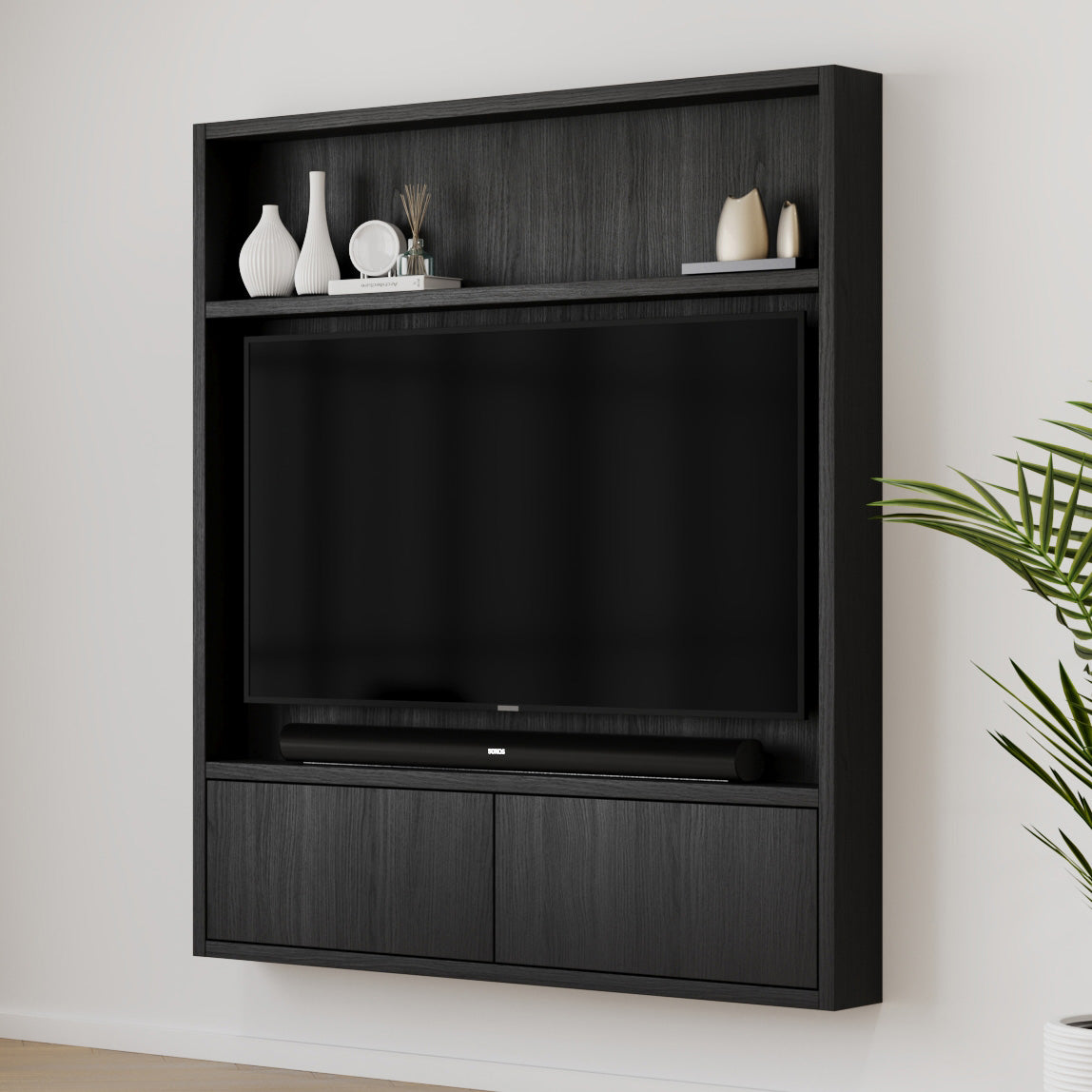 In de tv-nis van 140 cm tv-kast kan je echter ook heel goed een kleiner type, zoals een 48, of zelfs 43 inch tv ophangen. De tv-nis is hoog genoeg om onder het beeldscherm ook nog een soundbar te plaatsen.