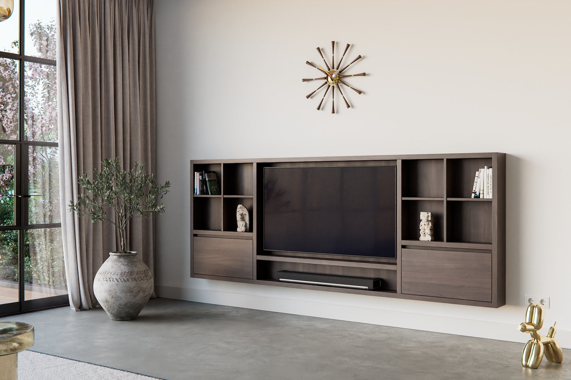 Aan de achterzijde is voldoende ruimte voorzien om kabels netjes weg te werken. Onze zwevende wandmeubels kun je de indeling aanpassen naar jouw persoonlijke voorkeur.