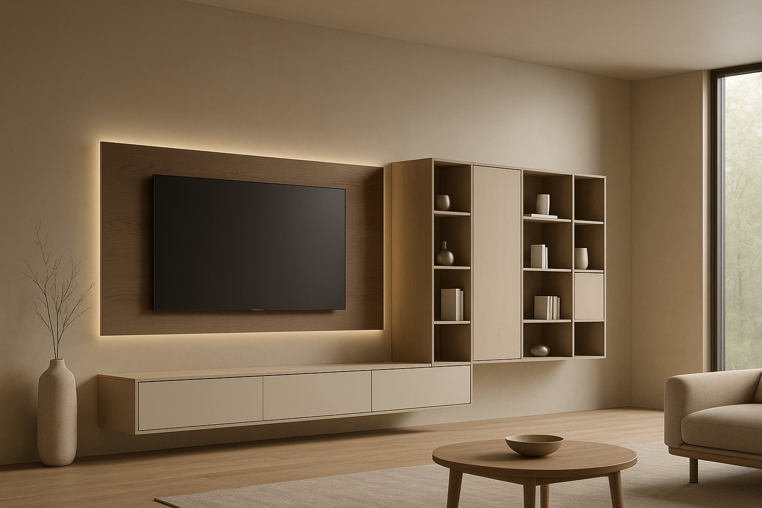 Een zwevend tv-meubel laat de ruimte optisch groter en ruimtelijker ogen.